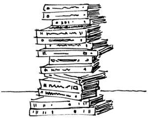 Ty útlé, napsané v jednom rozmachu, i ty velké, které jsou dílem celého života; staré s poničenou vazbou, ale i ty, které právě vyšly z nakladatelství a naparují se se svojí krásnou rudou páskou.